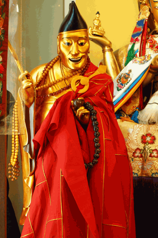 Within the statue are Dharma texts, precious relics and holy objects granted by His Holiness 14th Dalai Lama, His Holiness Sakya Trizin, His Holiness the 17th Gyalwang Karmapa Ogyen Trinley Dorje, His Eminence the 102nd Ganden Tri Rinpoche, His Eminence the 5th Dagri Rinpoche, His Eminence the 6th Kyabje Jhado Rinpoche, His Eminence Tsikey Chokling Rinpoche, His Eminence Kyabje Lama Thubten Zopa Rinpoche and many other precious lineage gurus.