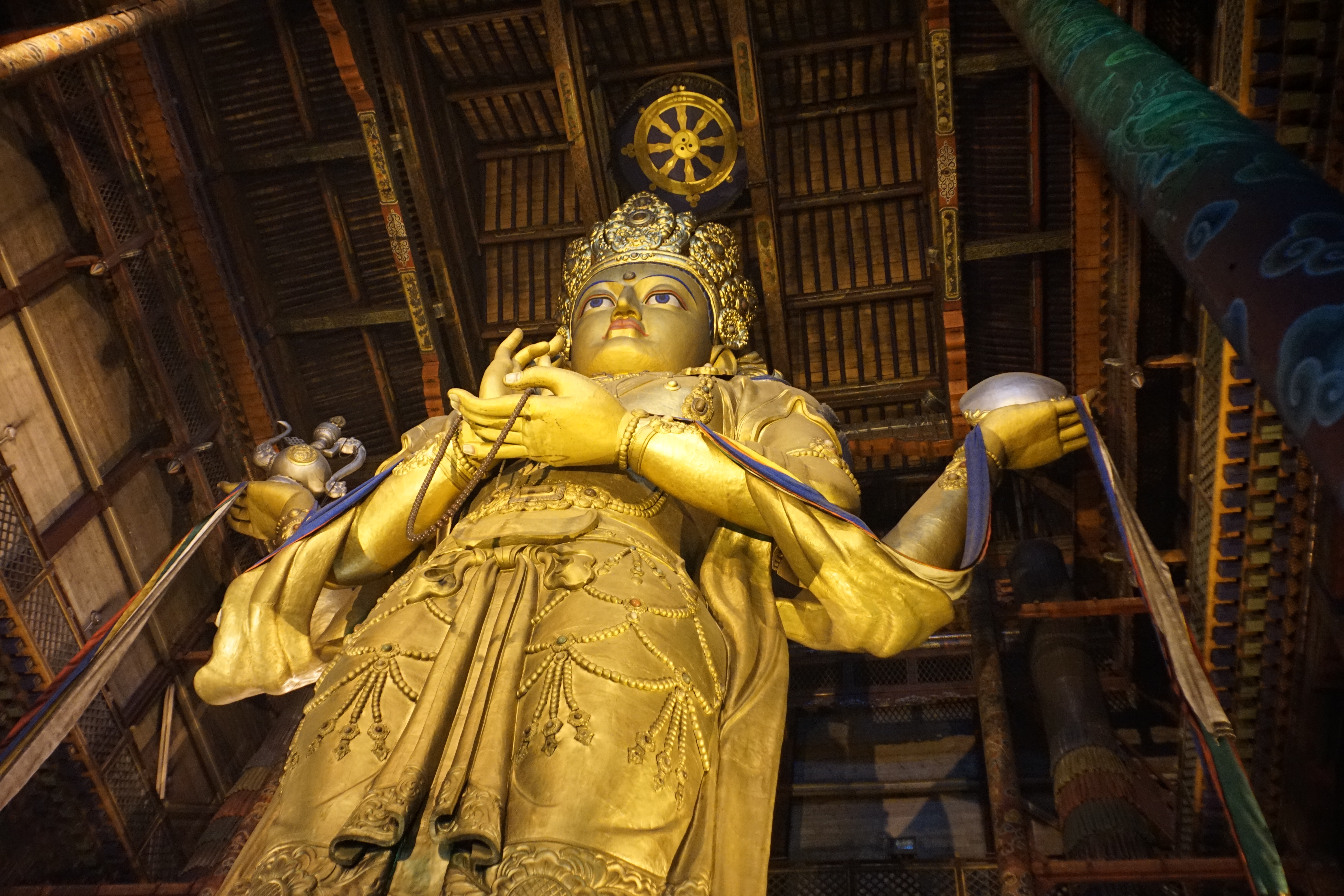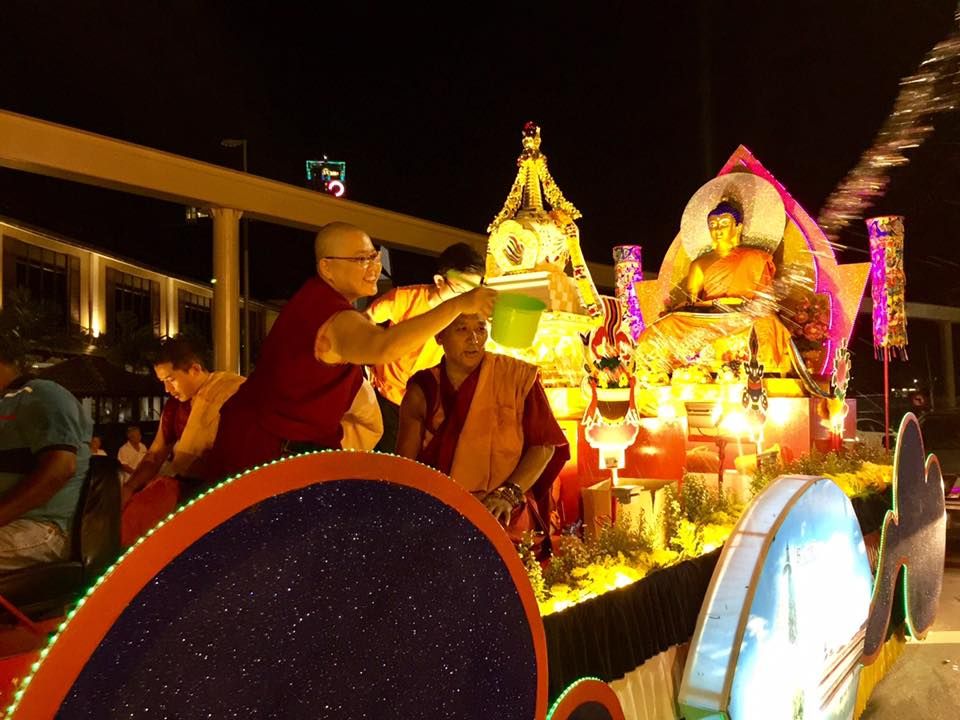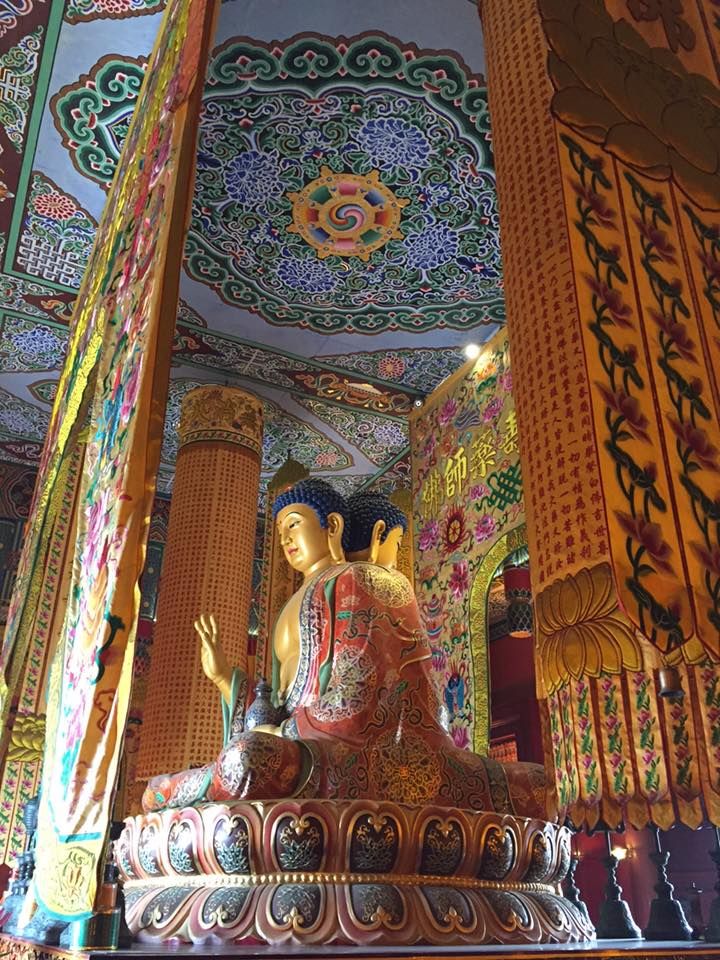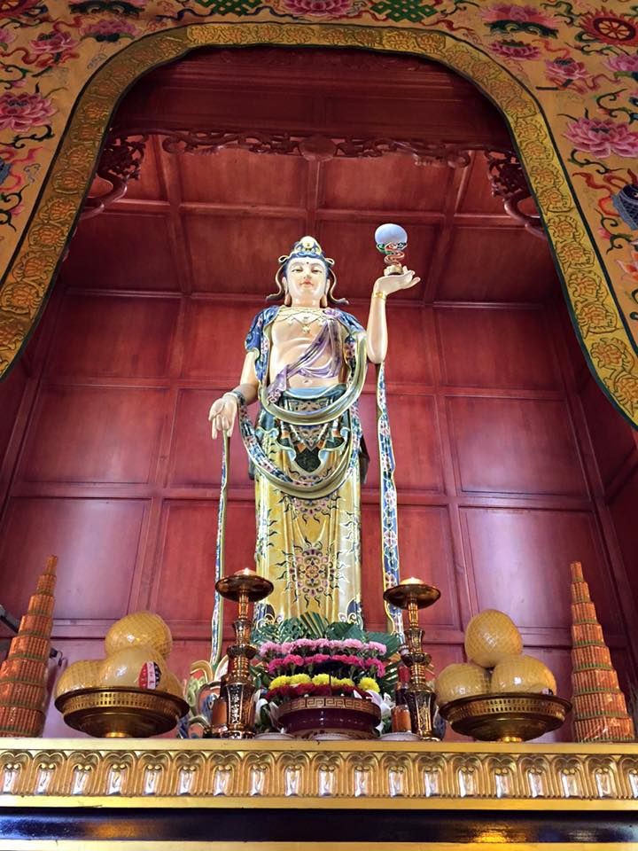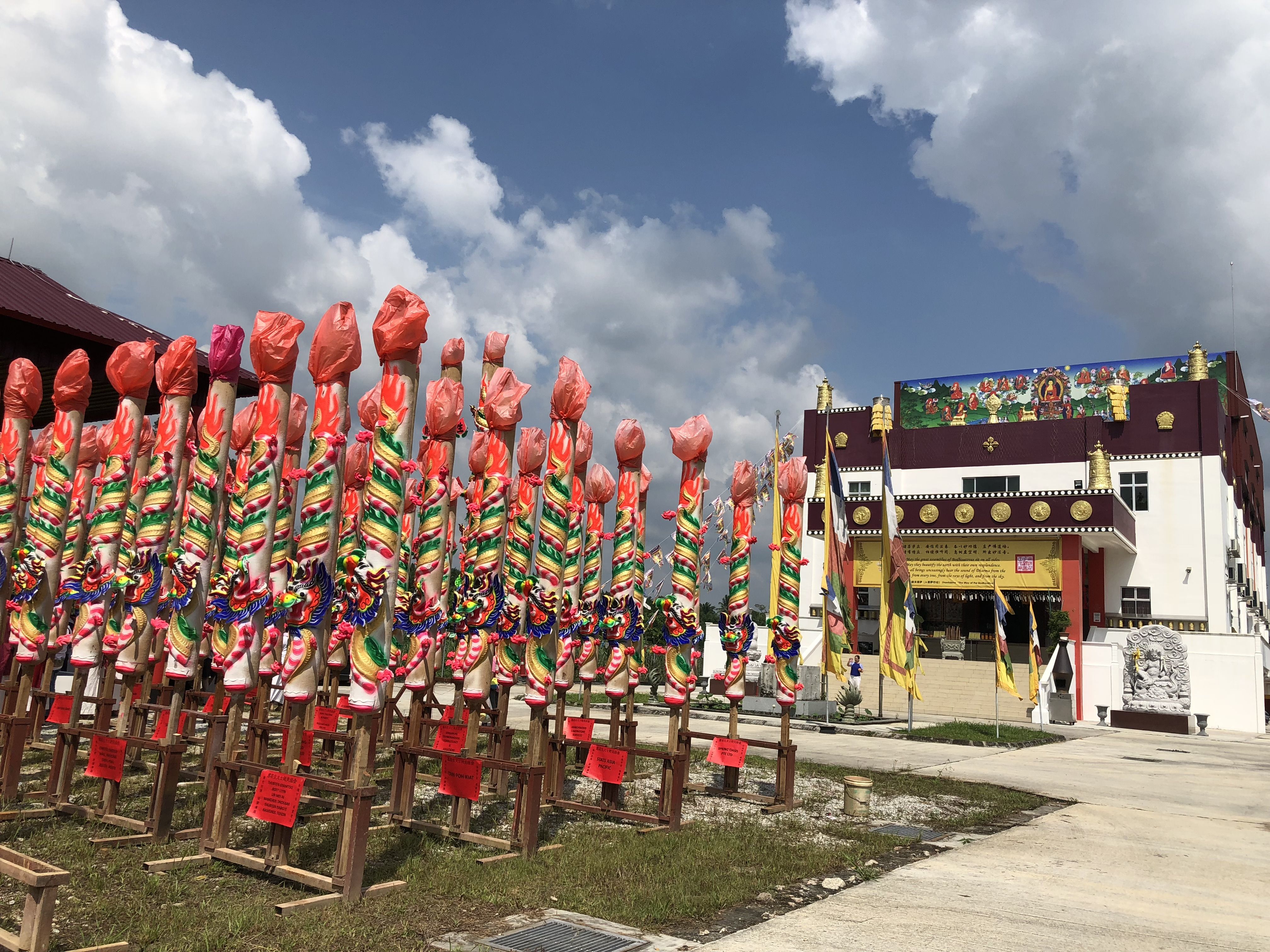 Specially commissioned by Singha Rinpoche, a magnificent statue of Thousand-Armed Chenrezig is housed in Thekchen Choling Kota Tinggi Meditation Center. Standing at 36 feet, it is the largest in Southeast Asia and is beautifully adorned with pearls, corals, turquoise and dzi-beads, the statue is the largest representation of Avalokitesvara in Tibetan style outside of Tibet and China that has been accurately represented. It is filled with tsung under the personal guidance of His Eminence the 6th Kyabje Jhado Rinpoche in the Vajrayana Buddhist tradition. Within the statue are dharma texts, precious relics and holy objects granted by His Holiness 14th Dalai Lama, His Holiness Sakya Trizin, His Holiness the 17th Gyalwang Karmapa Ogyen Trinley Dorje, H.E the 102nd Ganden Tri Rinpoche, His Eminence the 5th Dagri Rinpoche, Kyabje Jhado Rinpoche, His Eminence Tsikey Chokling Rinpoche, His Eminence Kyabje Lama Zopa Rinpoche and many other precious lineage gurus.