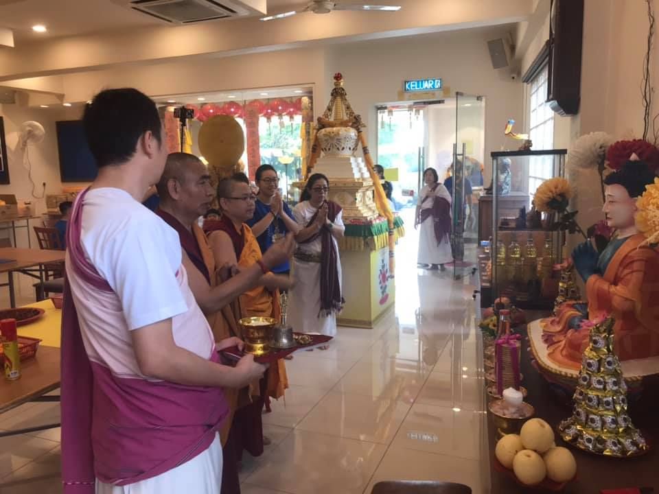 For many years, Malaysian students of Singha Rinpoche have persistently requested him to give teachings in Malaysia so that people in Malaysia can benefit from the dharma. To create the auspicious condition for such teachings to happen, numerous location were scouted. Singha Rinpoche played a significant role in guiding and advising the Malaysian student in setting up their centre. On 15 October 2012, Thekchen Choling Malaysia was officially approved by the Malaysian Federal Government as a society to operate as a Buddhist temple.