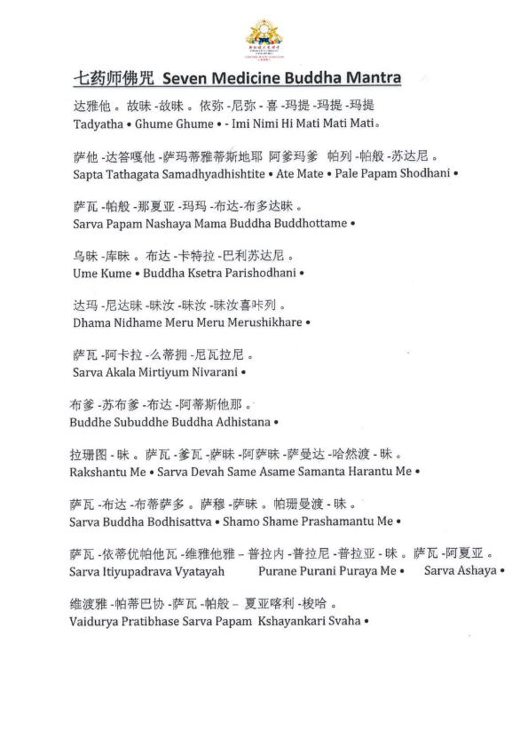 Seven Medicine Buddha Mantra (Eng & Chi)